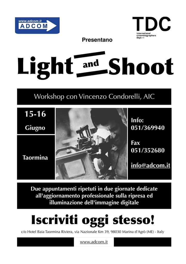 Il 15 e 16 giugno, all’interno della presentazione in esclusiva per la Sicilia dei nuovi prodotti foto e video di ADCOM, si terrà il workshop Light & Shoot con il direttore della fotografia Vincenzo Condorelli, AIC. Il workshop della durata di un giorno è modulare e coprirà aspetti teorici e pratici della ripresa ed illuminazione dell’immagine digitale.