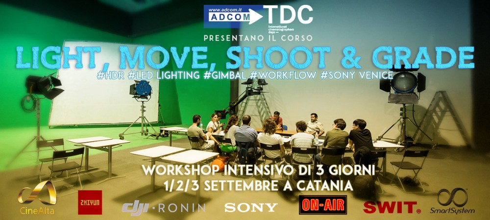 Grazie alla collaborazione con il nostro storico Partner Tecnico ADCOM abbiamo la possibilita’ di offrirvi, all’interno del programma di eventi di TDC18, un workshop intensivo, articolato in 3 moduli, per sperimentare sul campo le nuove tecnologie nel campo dell’illuminazione, della gestione del workflow digitale e degli stabilizzatori con un focus specifico sulle immagini in HDR, dalla ripresa alla finalizzazione. Sara’ anche l’occasione, in anteprima per il sud Italia, per testare la nuova Sony Venice e gli ultimi prodotti della serie RONIN DJI.