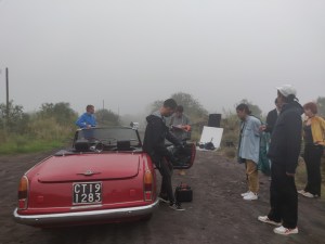 CineCampus shooting (from left to right): Directing tutor Anne-Riitta Ciccone, Production tutor Livia Barbieri, Nelle Verweirder (Belgium), Adam Bentel (South Africa), Camera tutor Kate Eccarius.