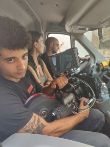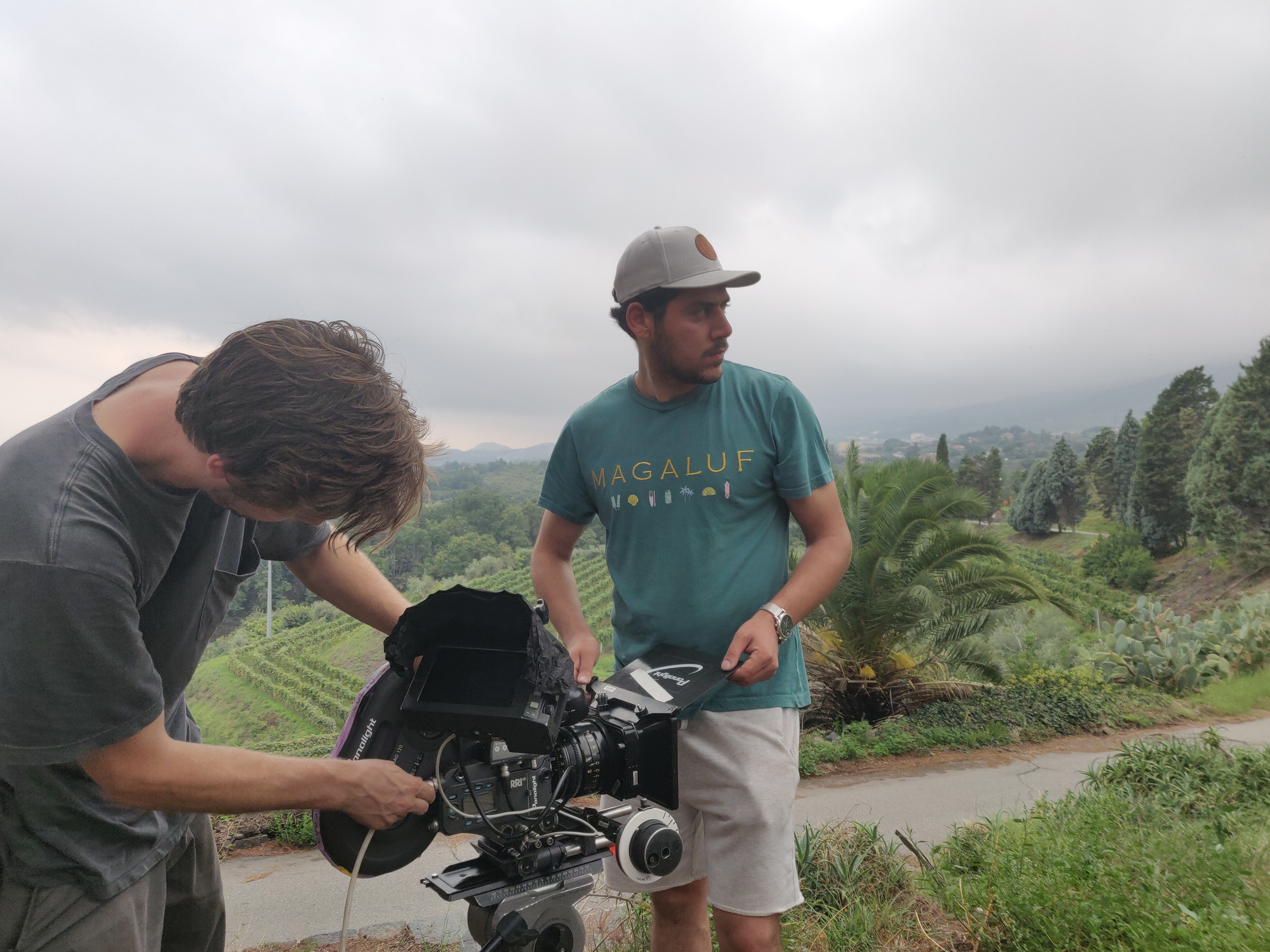 CineCampus shooting: Callum Begley (UK) and Alessio Angelone (Italy) lining up a shot.