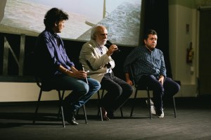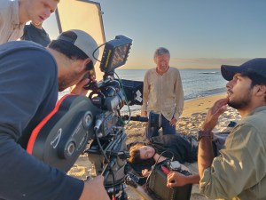 CineCampus shooting (from left to right): Production assistant Danilo Grasso, Directing tutor Anne-Riitta Ciccone, Production supervisor Premananda Franceschini.