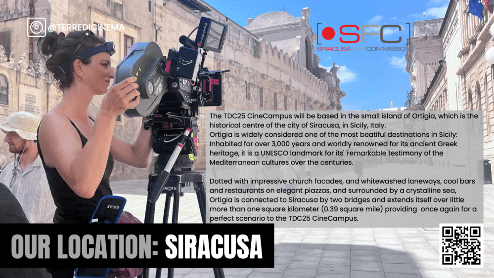 We extend our heartfelt thanks to the Siracusa Film Commission, Settore tutela e valorizzazione beni e attività culturali, turismo e università, Comune di Siracusa, and all our technical and educational partners for making this unique international experience possible, year after year, through their invaluable support and trust in the creative and educational mission of Terre di Cinema.