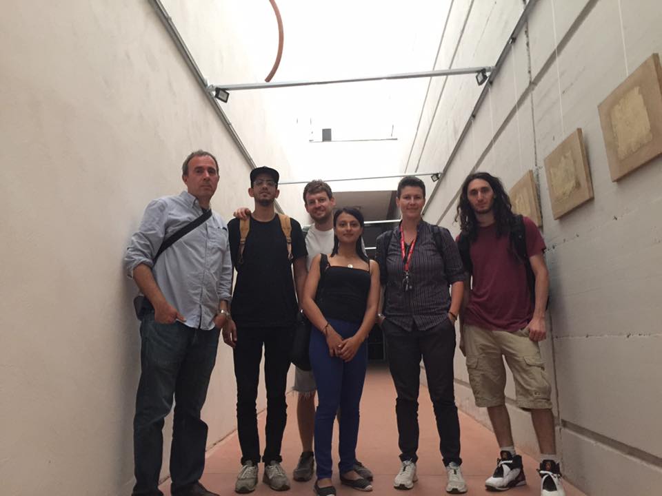 Pietro Scammacca del Murgo with CineCampus students Eyal Elisha (Israel), Max Shlomovitz (Israel), Sara Sabik (Morocco), TDC16 Coordinator Cecilia Grasso and Maayan Bleech (Israel) on location scouting