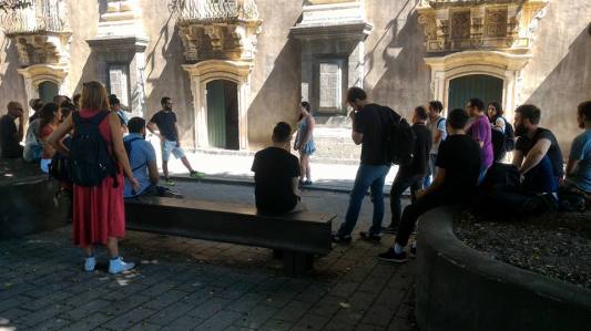 Participants of the Extended CineCampus TDC17 takes a break at the Monastero dei Benedettini – University of Catania